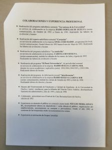 Lo de estudiar estuvo bien, y fue necesario (sin ironías), pero las situaciones a las que me enfrenté siendo representante de estudiantes o incluso cuando estaba en la radio me aportaron una serie de competencias que aún conservo y que me sirvieron para construir sobre ellas. Esta es la parte más actitudinal de este CV y la que más me gusta, a día de hoy.