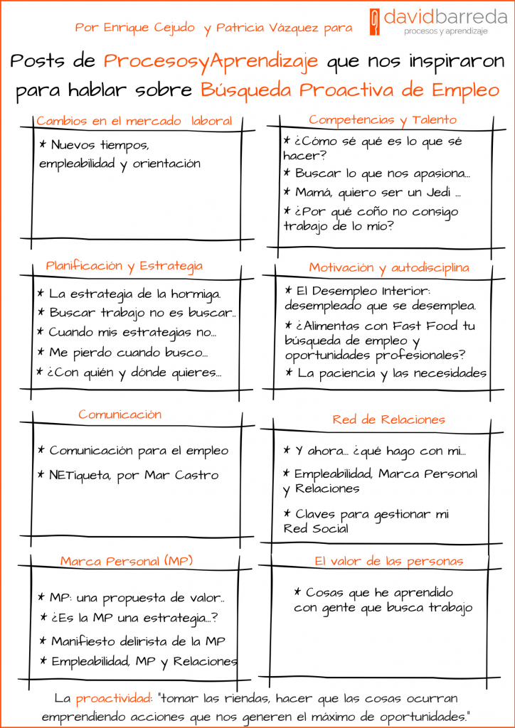 Pues bien, Enrique y Patricia, además de ser expertos en materia de empleo son probablemente los mayores conocedores de este Blog… de hecho, creo que me ganarían en un concurso de preguntas y respuestas sobre Procesos y Aprendizaje.