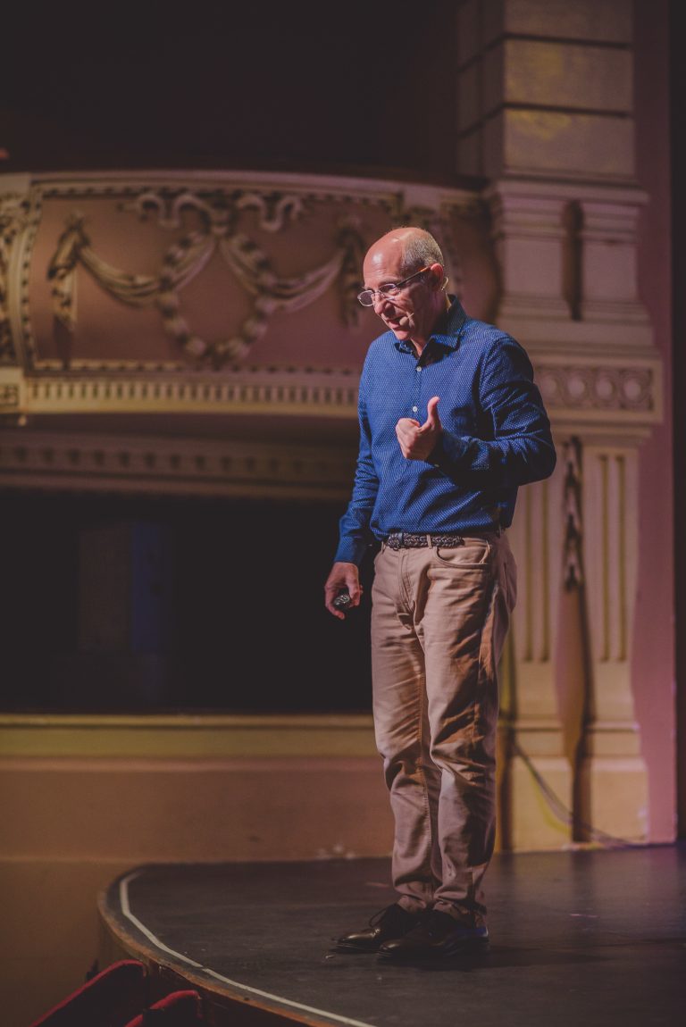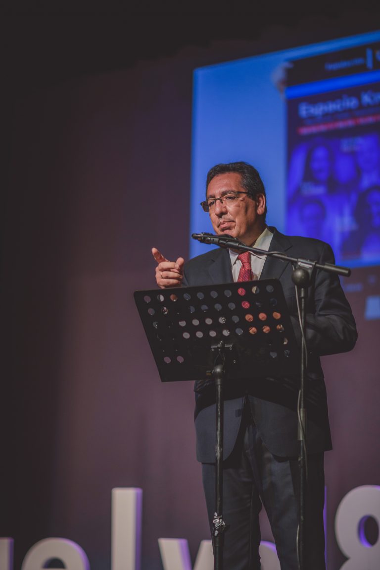 Tengo que decirnos que mi exposición no habría sido la misma sin él. Gracias a su arte y su pericia, conseguimos insertar fotos del mismo evento en mi presentación, lo que ayudó a reforzar el mensaje de coherencia interna que quería transmitir y darle sentido a todo la mañana con ese resumen cualificado que se veía ilustrado por las fotografías de lo que había ido ocurriendo desde las 9:30 en el Gran Teatro de Huelva.
